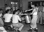 Hereford Interment Camp. Group eating.
