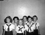 Polio fund collectors. Camp fire girls, back row, left to right, Diane Payne, Gloria Dean Wiles, and Frances Latham. Front row, Sammie Boles, Doris Jean Wiles and Mildred Paschal.