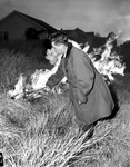 Volunteer grass burners. C. S. Burns lighting grass.