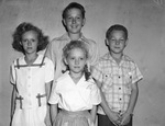 Polio fund collectors. Back row, left to right, Alice Sweet, Gene Kizziar and A. J. White. At front is Carol Sweet.