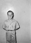 Many Polio Patients Now Get Extensive Treatment: Infantile paralysis patients now require more extensive treatment than they did in the earlier stages of the disease. W. M. Massie, chairman, and A. B. Vera, secretary-treasurer of the Tarrant County Infantile Paralysis Association, are gratified that contributions are still coming in to the emergency fund. Among most recent contributors to the fund are Billy Harris, 11, and Jimmy Harris 7, of 1704 East Leuda, $9.03; Jimmy McKinney, 1634 East Leuda, pupil at R. Vickery School, $14.64. Jimmy McKinney is pictured here. A young boy is standing up with hands behind his back, smiling, wearing pants and button down shirt. Published in The Fort Worth Star-Telegram evening edition, September 11, 1943.