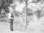 Shown here is G. W. Haltom fishing. Mr. Haltom is seen to be wearing a Hat.