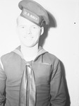 A. G. Eller Junior, 19, seaman first class. A young man in a navy uniform standing against the wall.