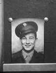 Private First Class (Pfc.) Bryan Lane Davis, 19, is serving with the Army Air Forces (AAF). His fighter squadron is stationed somewhere in the Italian war zone. A brother and two brother-in-laws are also serving in the military. His wife is working in Beaumont, Texas. He is the son of Mr. and Mrs. J. H. Davis. Private (Pfc.) Davis is shown in his official military photograph, dressed in his military uniform. The photograph is a copy of his portrait. Published in the Fort Worth Star-Telegram morning edition, January 25, 1944.