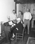 Musical Memories -- This "Cottage Organ" is owned by Mrs. J. A. Matthews. Seated at organ is Mrs. A. P. Burns, Pauls Valley, Oklahoma; standing, left to right, Watt Matthews, Mrs. A. B. Judd, Houston and Joe B. Matthews, Albany. The organ is one of the many treasures to be found in the restored frontier home above old Fort Griffin in the bend of the Clear Fork. Published in The Fort Worth Star-Telegram morning edition, May 14, 1944.