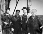Image of four unidentified oil workers on the Hanna Heirs Wells.