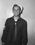 Jimmy Thomas Benton, 20, a Coxswain, has returned to San Francisco after visiting his parents Mr. and Mrs. U. R. Benton. He attended Riverside High School. He is wearing his uniform and smiling in this half length portrait. Published in the Fort Worth Star-Telegram evening edition, July 21, 1944.
