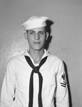 Alvin Bennett, Ship's Cook Second Class, was home on a leave recently with his wife and son, after being stationed three months at the naval base in Trinidad. He is waiting assignment to an aircraft carrier. Bennett is shown wearing his navy uniform.
