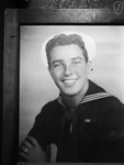 Sailor Malcolm E. Massey. Photo of a picture in a frame. He is shown smiling and wearing a naval uniform. Malcolm, pharmacist's mate third class, in the Navy, has been awarded the commendation ribbon for meritorious achievement on Saipan. He is son of Mrs. Margaret McDonald. He attended Paschal High School. He enlisted in the Army when 15 and was known as the Army's youngest private. Published in Fort Worth Star-Telegram morning edition, November 2, 1944.