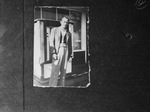 Shown is Private First Class (Pfc.) James T. Arrington, Junior (Jr.). A man standing outside in front of a storefront. He is wearing a suit with a sweater vest. There appears to be an open freezer behind him. Private First Class (Pfc.) Arrington, Jr. is son of Mrs. Ruth Arrington. He was wounded in France September 17 and awarded the Purple Heart. He is in a hospital in England. His wife, the former Miss Effie Lucille Marshall, and their two small children, are living in Houston. Published in Fort Worth Star-Telegram morning edition, October 31, 1944.