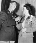 Russell, Roy D. (Lt.); Stewart, Ruth (Miss); Russell, Roy D. (Mrs.); Military uniforms; Husband; Wife; Drinking vessels; Martini glass; Corsages; Military officers