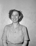 Star-Telegram Junior shots. Jim Anderson, latest member of the Counter Brigade is pictured here. She is standing against a bare wall and smiling for the photo. She is dressed well. Her hobbies are golf and bridge. In her spare time, she keeps house for husband Roy. Published in The Fort Worth Star-Telegram, March 15, 1945.