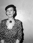 Mary C. Ervin, a woman on the night city police beat. She is no amateur at that sort of news writing. She came with Star-Telegram March 1. She hails from California, where she has been writing state police and similar news. She lived in San Francisco. On the trail of some western lore she came to Oklahoma and Texas. She is pictured here -- standing against a bare wall, wearing a printed dress, hat, bow and earrings. Published in The Fort Worth Star-Telegram, March 15, 1945.