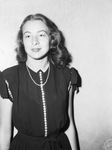 Betty Claire Schmid, senior's new staff member and reporter, is pictured here. She is shown standing against a bare wall, facing front and posing for the camera. She is wearing a dark color dress and a pearl necklace. She is a native of Fort Worth and graduated from State last year. She spent the summer of '42 as an apprentice at the Cape May Theater, Cape May, New Jersey, and the summer of '43 at the University of Mexico, Mexico City. Published in the Fort Worth Star-Telegram, June 1945.