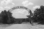 Approximately 150,000 to 200,000 GI's have passed under the arch entrance to the "Hell's Bottom" training area of Camp Wolters. An unidentified man is standing in front of the arch.