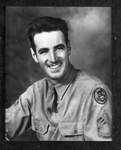 Shown is a copy of half bust portrait of W. J. Barrett. Photograph showing a young man wearing military uniform, facing slightly left and smiling for the camera.