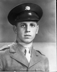 Shown here is a copy of framed half-bust portrait photograph of Staff Sergeant (Sgt.) Melvin C. Frank. He is the son of Mr. and Mrs. Sol Frank of San Antonio. He is wearing military uniform. He has been awarded the Air Medal with five clusters for bombing missions against Germany. He served as radio operator and gunner on a Marauder bomber of the "Tiger Stripe" group of the 9th Air Force from January until the conclusion of fighting in Europe. Published in the Fort Worth Star-Telegram, August 8, 1945.