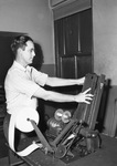 Star-Telegram Junior newspaper Joe Neal. Ready to print the dealer's list on the addressograph, Joe loads the machine which feeds and prints the list automatically. The roll, when printed, goes to the mailing room where it is pasted on wrappers of the dealer's bundles.