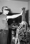 Star-Telegram Junior newspaper Ben Norcross loads the Elliott addressing machine used to print the little pink labels that appear on the papers of mail subscribers to the Star-Telegram.
