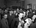 Telephone company employees meeting at their union hall during a strike in Fort Worth, Texas. The room is crowded with people.