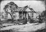 Sketch of "Exchange Office" by Blanche McVeigh of house between 1st and 2nd on Main Street where Captain M. B. Loyd established the office that became First National Bank.