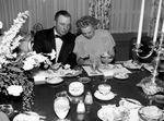 A man and woman sit at a table during Mrs. W. C. Stripling's birthday party.
