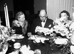 A photograph featuring a man seated between two women at Mrs. Stripling's birthday party.