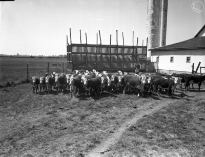 Herd of cattle standing in the feedlot on the G. E. Goodfellow farm in Springfield, Ohio.