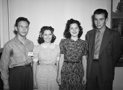 Paschal High School activities leaders include (left to right) Dick Richardson, class treasurer, Alma Smith, secretary, Jimmie Kilpatrick, vice president, and Glen Elkins, president. All four students are seen standing side by side dressed nicely for their photo.