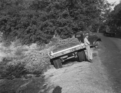 Goode, Robert; Trucks; Truck Drivers; Bricks; Flat Tires; Traffic accidents; Trees; Roads