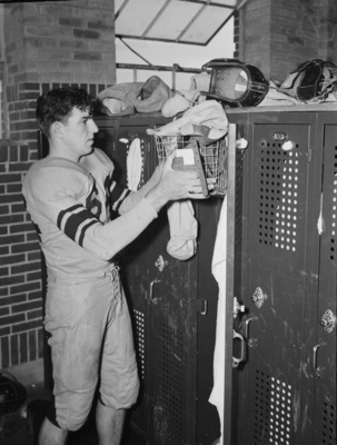Newton, Tom; Polytechnic High schools; Polytechnic Parrots; Football; Football players; Football Uniforms; Locker rooms; Football helmets