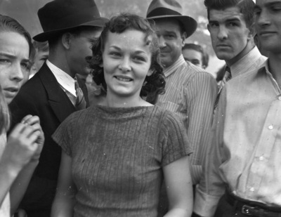 A fire erupted late Thursday afternoon at a rooming house on Taylor Street. Mary Lee Jennings, a dancer, fled her home leaving behind her belongings. She is standing in a crowd as they watch firemen attempt to extinguish the blaze. Another resident of the second store structure was P. C. Pannell, a sixty-one year old musician. He was killed and his wife critically injured when they jumped from their second story window.