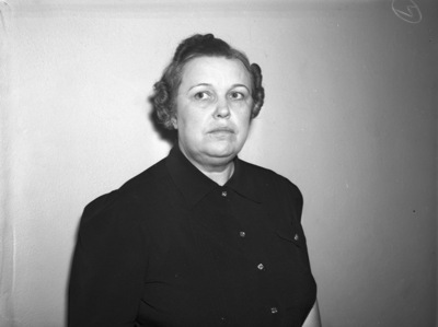 Members of 17 subordinate and 13 Tarrant County Rebekah lodges will hold their two-day annual Odd Fellow Rebekah convention at Lodge 251. The prevailing custom of having a member of the International Order of Odd Fellows and the Rebekah Assembly alternate as president of the Tarrant Association will give Mrs. W. C. Clarck the presidency. Mrs. W. C. Clark, new president of the Odd Fellows Rebekah Session, is a member of South Slide Rebekah Lodge 49. She is shown standing against a blank wall, wearing a dark dress. Published in the Fort Worth Star-Telegram morning edition, October 18, 1940.