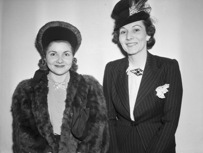 Miss Maurice Brown, left, and Miss Zona Barney, who returned Sunday from a two-week vacation trip. The two girls visited New York, Chicago, Atlantic City, Washington, D.C., Boston, Detroit, West Point, Annapolis, Niagara Falls and New Orleans. They also visited Canada. The ladies are posed standing next to each other. Both are well dressed and wearing hats. Published in The Fort Worth Star-Telegram Evening Edition October 25, 1940.