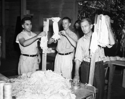 Men who are blind have been employed by Fort Worth's Lighthouse for the Blind to make mops for United States Army camps, 10/23/1940