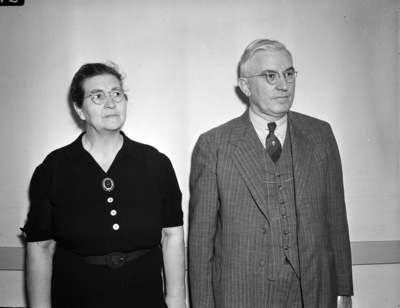 Reverend W. W. Ward. Photograph of Reverend W.W. Ward and his wife. She is standing on the left and he on the right. She is wearing a black dress and he is wearing a suit.