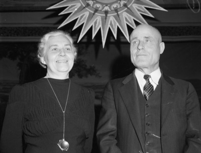 High officers of the Order of the Eastern Star, attending the annual session of the Grand Chapter of Texas at Mineral Wells. Shown here are Mrs. Freda Bernhard of Dallas, Texas, worthy grand matron, and E. C. Couch of Pharr, worthy grand patron. Published in The Fort Worth Star-Telegram Morning Edition October 29, 1940.