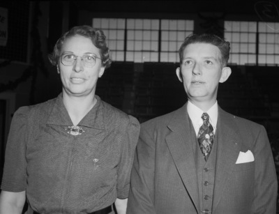High officers of the Order of the Eastern Star, attending the annual session of the Grand Chapter of Texas at Mineral Wells. Shown are Mrs. Robbie Dyer of Amarillo, left, and A. E. Shirley of Port Arthur. Published in The Fort Worth Star-Telegram Morning Edition October 29, 1940.