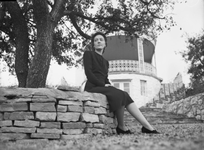 Mrs. Jack Moore Buckler, new member of Assembly, is shown sitting underneath a tree in her yard. The Assembly will open the social season with the presentation of debutantes at the Hotel Texas. Mrs. Buckler is wearing a dark color long sleeve dress. Published in The Fort Worth Star-Telegram Evening Edition November 01, 1940.