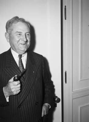 Colonel who was here 22 years ago pays visit to old friends. Here for a visit Thursday was a man who helped execute the World War draft, arranged for Canadian fliers to train at Fort Worth in 1917-18 and was commanding officer in three flying fields here for nine of the war months. He is Colonel David L. Roscoe, 66 year-old retired army officer who made so many friends in Fort Worth 22 years ago that he has a watch inscribed with the whole town's affection. His visit this time is purely social and sentimental for he retired from the army in 1920. The colonel is shown smiling, dressed in a suit and holding a pipe in his hand. Published in The Fort Worth Star-Telegram Morning Edition November 01, 1940.