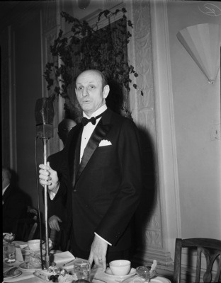 Walker, DeLoss; Chambers of commerce; Banquets; Liberty Magazine; Periodicals; Editors; Microphones; Dining Tables; Tableware