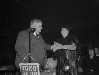 Phillips, Leon (Gov.); Will Rogers Coliseum; Scrolls (Visual works); Microphones; Rites & ceremonies