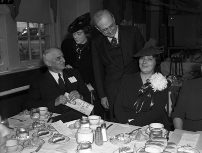 Alumni; Homecomings; Luncheons; Texas Christian University; Shirley, Douglas; Shirley, Douglas (Mrs.); Foster, R. H.; Foster, R. H. (Mrs.); Corsages; West Texas State Teachers College