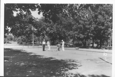 Three men playing croquet in Sycamore Park, 11/18/1940