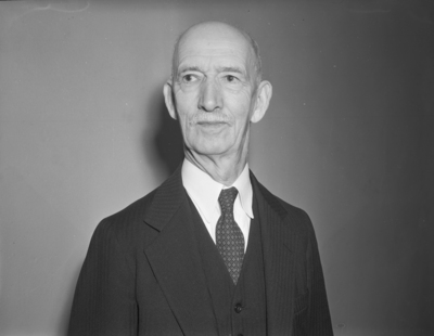 John Straiton, Scottish-born retired Fort Worth business man, has accepted a call to serve as minister of the Church of Christ in Burleson, Texas. Straiton, who has preached in England, Scotland, Wales, Ireland and France and in many points in the United States during the last 50 years, came to America in 1906. Until four years ago he was district sales manages for a Minnesota food manufacturing company. The congregation which he will served was organized slightly more than a year ago and has just constructed a one-story frame building for worship services. Mr. Straiton is shown here wearing a suit and tie and standing against a wall. Published in the Fort Worth Star-Telegram evening edition, November 30, 1940.