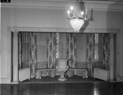 Interior of Winfield Scott Home (Thistle Hill), 1509 Pennsylvania Avenue; room with draperies and large urn, 12/31/1940