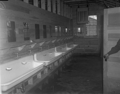 Military training at Camp Bowie, Brownwood, Texas, World War II; bath house at the 36th Division training center, 01/04/1941