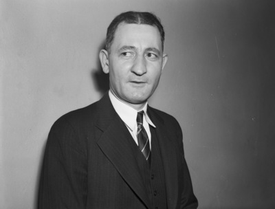 Hunter Blattau is in charge of a newly opened Fort Worth and Denver City Railway office at the Livestock Exchange Building. He holds the title of assistant agent. Blattau is standing in front of a blank wall, wearing a three-piece suit with a striped necktie.