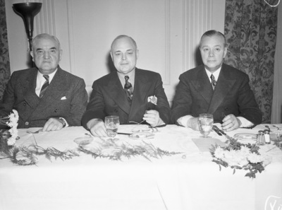 Banquets; Clithero, W. S.; Lund, A. A.; Eastwood, George A.; Dining Tables; Tableware; Flower arrangements; Conventions
