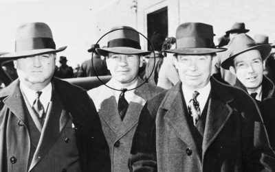 Left to right are, B. G. Byars, Bryan Payne, W. F. Nenney, and L. C. Johnston. All four men are from Tyler, Texas. They are dressed in hats, suits, and overcoats.